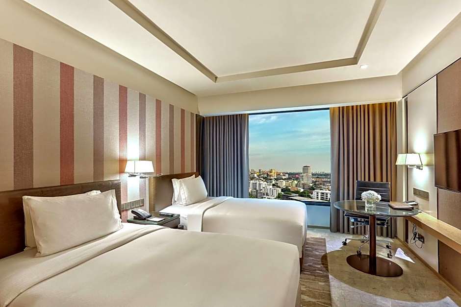 Located on higher floors, rooms are fitted with a flat-screen cable TV, mini-bar and seating area. Free toiletries and hairdryer are included in an private bathroom.